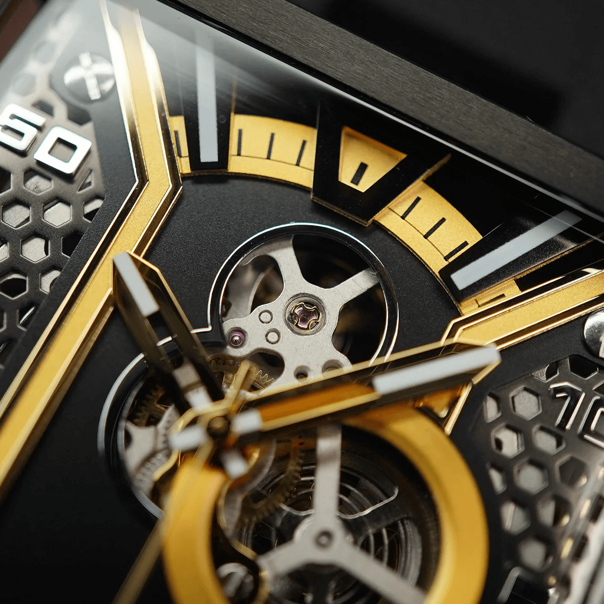 『LEXTEP2.0』の最大の特徴は、文字盤から内部の精巧なムーブメントが透けて見えるスケルトンデザインにあります。多忙な日々の中で、ふと腕に目をやれば、規則正しく、しかし力強く鼓動する歯車やゼンマイの動きが、視覚的に心を落ち着かせ、思考のノイズを静かに消し去ります。これは、デジタルな完璧さとは対極にある「人間らしさ」を感じさせ、心を豊かにする体験です。
