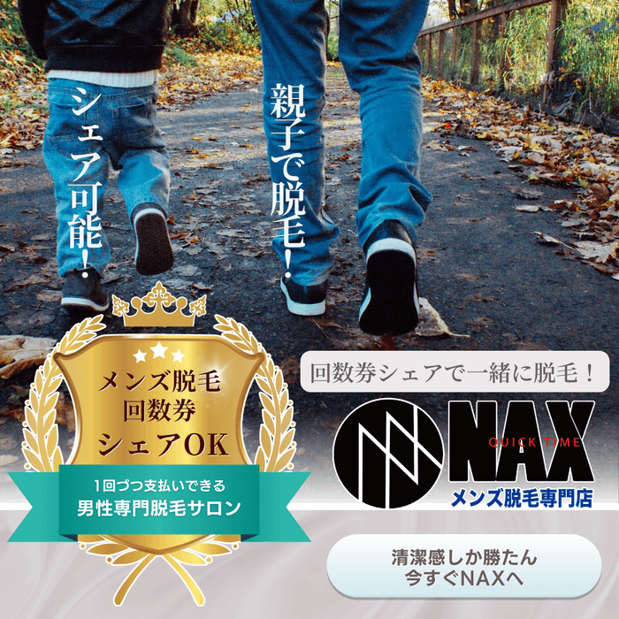 メンズ脱毛サロンNAXでは、4回分の回数券を親子や友人とシェアできる『シェア脱毛』が可能です!