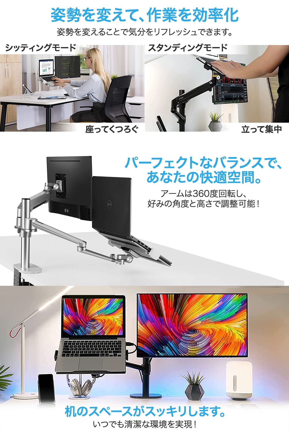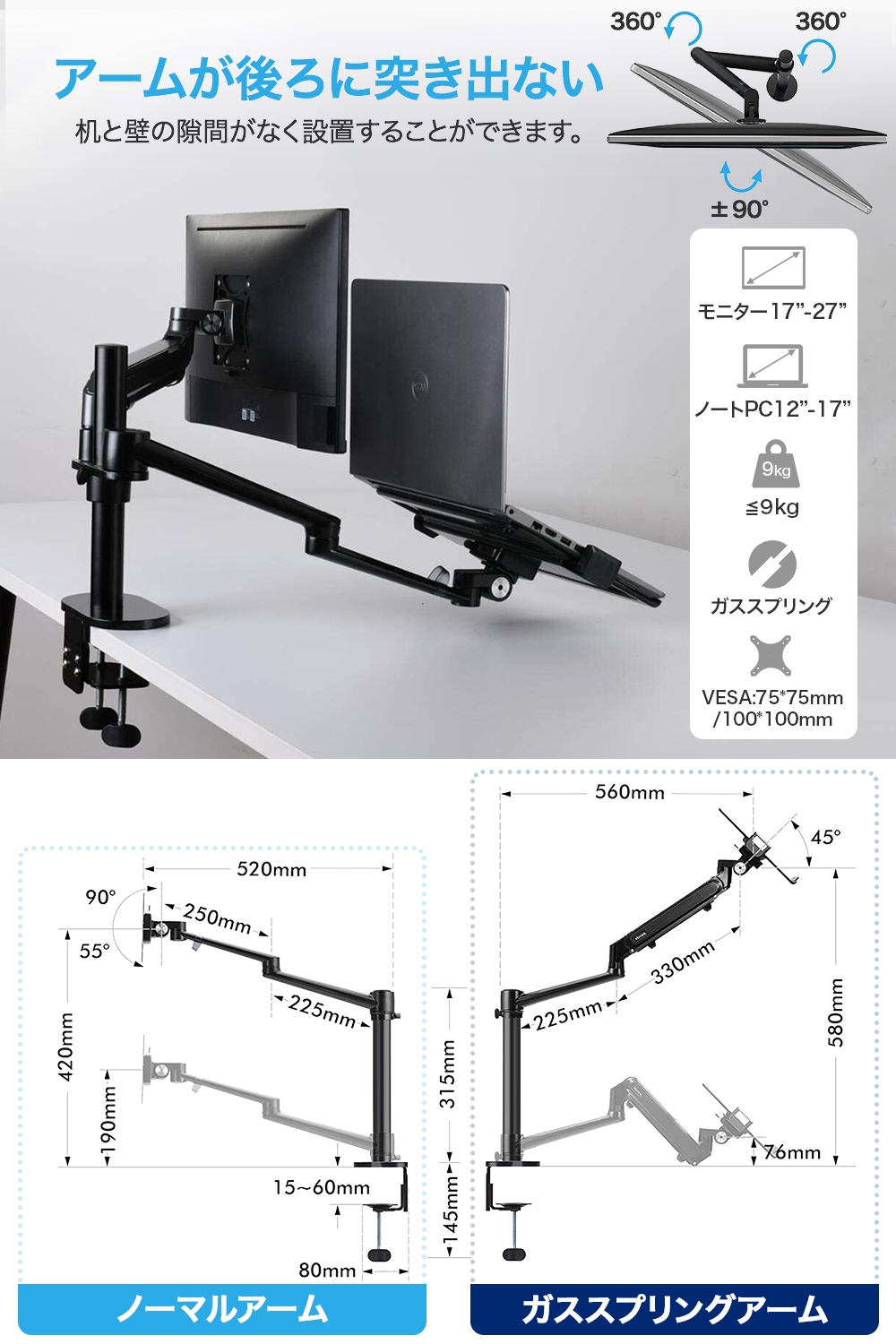 この度、日本で販売する商品は「ノートPCモニターアーム」「ノートPCモニターアーム(ガススプリング)」「2画面デュアルモニターアーム」となります。