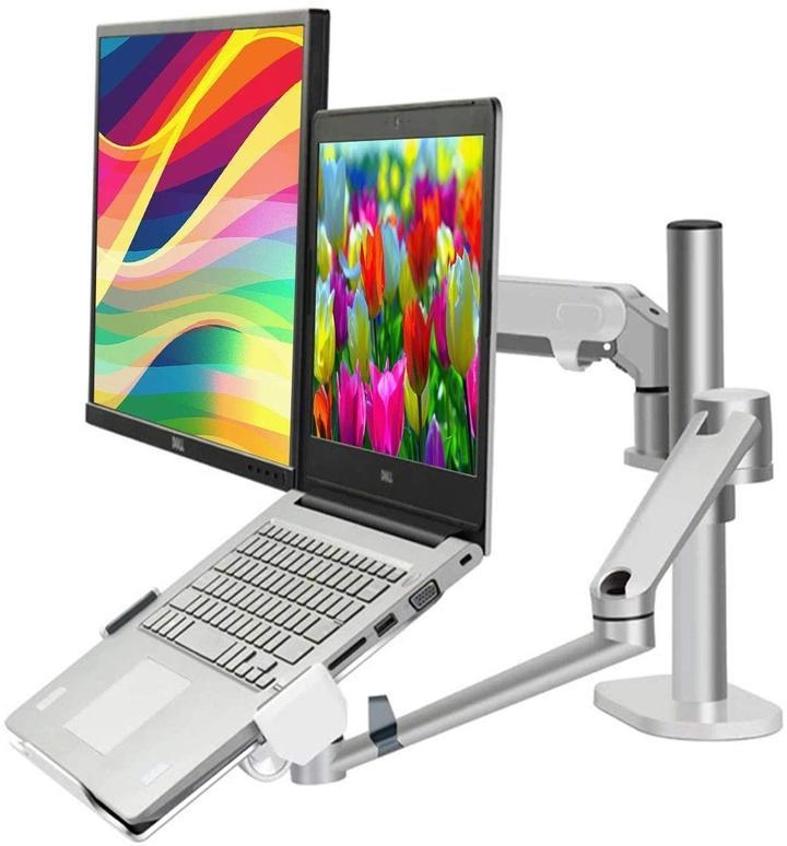 モニター+PCアーム+タブレットを組み合わせて360度の回転と、広い可動域で好みの視線に配置することができます。