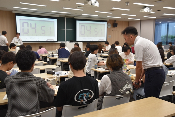 都市情報学部の森龍太助教が担当する3年次前期開講科目「観光の資源」で、本学と連携協定を締結している富山県氷見市の職員2人が7月8日の講義でゲストスピーカーとして登壇し、受講する学生約60人に「自治体目線での観光資源の持続可能性を考える」と題して、氷見市の主な観光資源や今年1月の能登半島地震による観光への影響などについて解説しました。