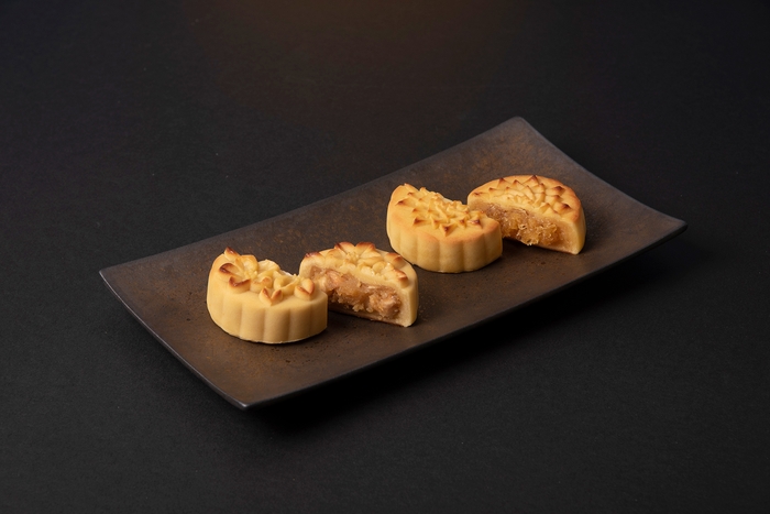 「パイナップルムーンケーキ」は、完熟パイナップルのフィリング、そして塩漬け卵黄を混ぜ合わせたカスタードで、甘さと塩気の絶妙な深みある味わいが特徴です。昨年の発売時には予想をはるかに上回る好評をいただき、早々に完売。