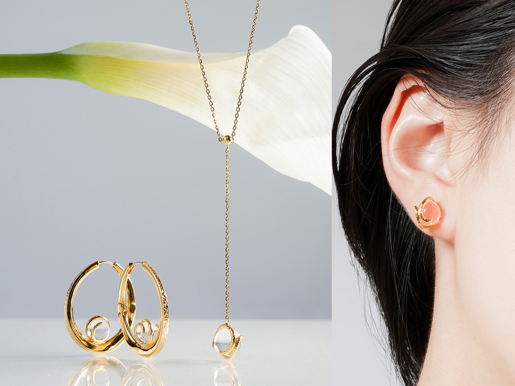 水晶の最も理想的な姿といわれる真球で、穴をあけずにジュエリーに仕上げる「アヤミ ジュエリー」のこだわりが詰まっています。