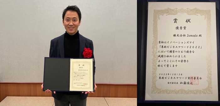 "Sumapla" ビジネスプランコンテスト「革新ビジネスアワード 2022」にて優秀賞を受賞