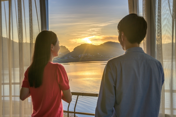 浜名湖畔にたたずむホテル客室からは、浜名湖を一望できる。上層階や、2面窓が特徴の角部屋などをお好みに合わせて選べるのもポイント♪