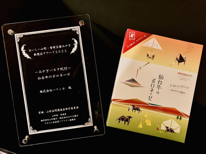 仙台・レストランパリンカ、みやぎパスタ紀行シリーズより 仙台牛のボロネーゼが新商品アワードを受賞!