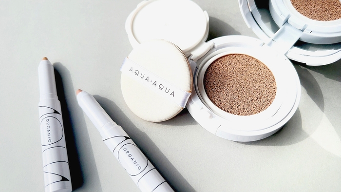 化粧品はシリコーンなど油性の合成成分が使われていることが多いため、メイクを落とすためにクレンジングを使用しますが、アクア・アクアのアイテムは、フルーツ・植物・ミネラルなどの天然由来原料。ファンデーションの色も鉱物である、ミネラルのみで着色し、合成着色料ゼロ。生分解性に優れた石けんのみでメイクオフすることができます。またマスカラやリキッドアイライナーはお湯のみで落とすことができます。