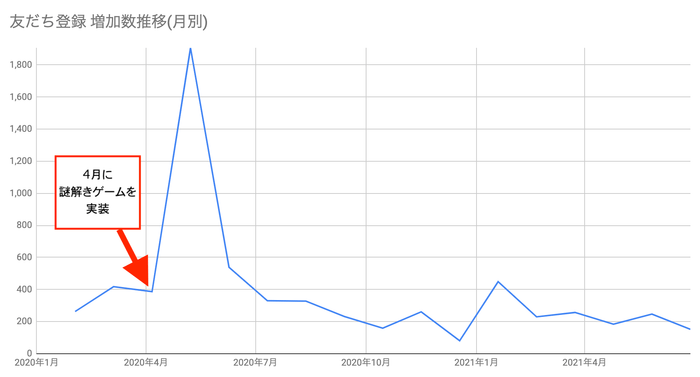 2020年4月に弊社のアカウントに実装以降、急速にフォロワーが増加。現在も毎週30以上、毎月約200〜240の新規フォロワーを獲得。