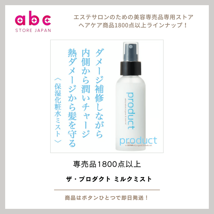 ザ・プロダクト ミルクミストは、髪も肌も同時にケアできる保湿ミスト。熱ダメージや乾燥に悩む方にぴったりの万能アイテムです。自然派成分・香り・携帯性のバランスが非常に良く、毎日のヘア&スキンケアに1本あるととても便利。