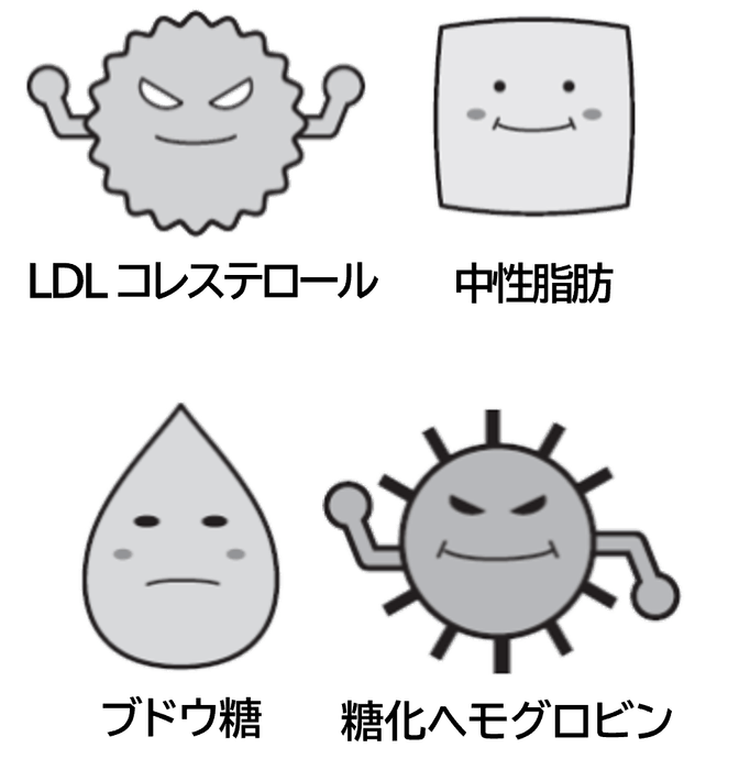 この状態を示す指標が「LDLコレステロール」「中性脂肪」「血糖値」「ヘモグロビンA1c」です。LDLコレステロールが高まると血管内の壁にプラークを形成し、動脈硬化を進行させます。中性脂肪の過剰な摂取は、脂肪の蓄積を促し、血流を悪化させます。血糖値とヘモグロビンA1cの上昇は血管の糖化を引き起こし、血管障害を進めます。これらが高い状態では、血液が粘り気を増すことで、悪玉血液化が進み、生活習慣病リスクが高まります。