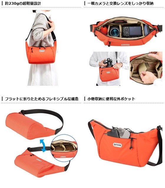 OUTDOOR PRODUCTS(アウトドアプロダクツ)より軽快に持ち運べる超軽量カメラバッグ「カメラショルダーバッグ06/07」2種が新発売!