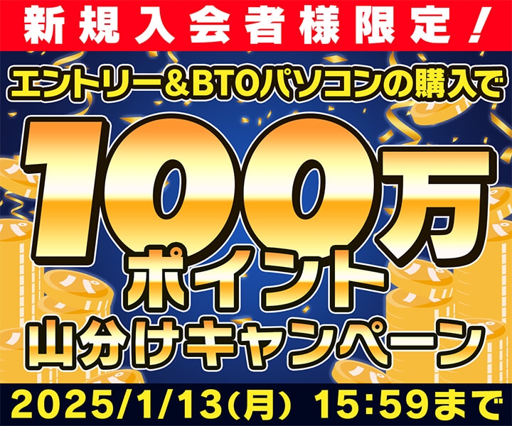 ■ 新規入会者様限定!BTOパソコンの購入で100万ポイント山分けキャンペーン!