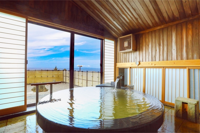 熱の湯と呼ばれる良質な温泉が自慢のPremium 汐美荘では2つの貸切風呂をご用意しております。天気のいい日は心地よい海風を感じながら、湯あみをお楽しみいただけます。