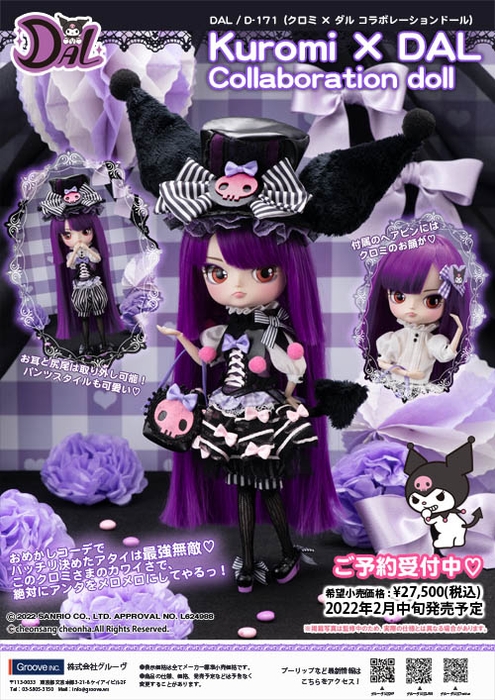 ファッションドール・ダルから サンリオのキャラクター「クロミ」コラボレーションドール 「Kuromi × DAL Collaboration doll」が発売。ご予約受付中!2022年2月中旬発売予定