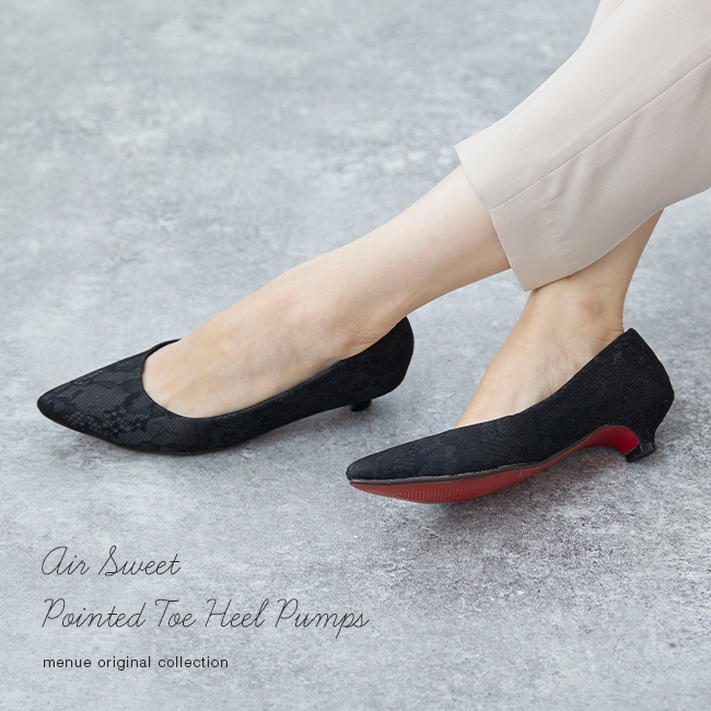 レース生地やレッドソールなど、高見えする素材が新登場。3cmと低めのヒールなので、普段あまりヒールは履かない方も履きやすい設計です。ぺたんこ靴よりも、シャープな印象に。