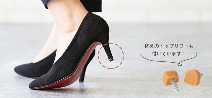 歩く時のカツカツ音を極力抑え、静音仕様のヒール先(トップリフト)を採用。強度も従来品にくらべアップ。