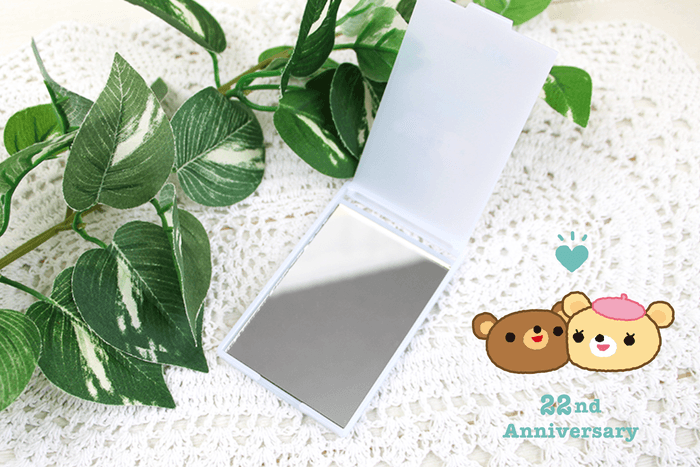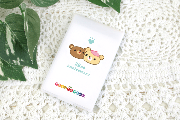 シールDEネームのコラム「いつDEもママらぶ」で登場するオリジナルキャラクターがはいった、コンパクトサイズのポケットミラーです。姉弟のクマセとクマッタが仲良くしているイラストに22周年が印刷されています。お子さまから保護者様までお使いいただけるデザインに仕上げました。