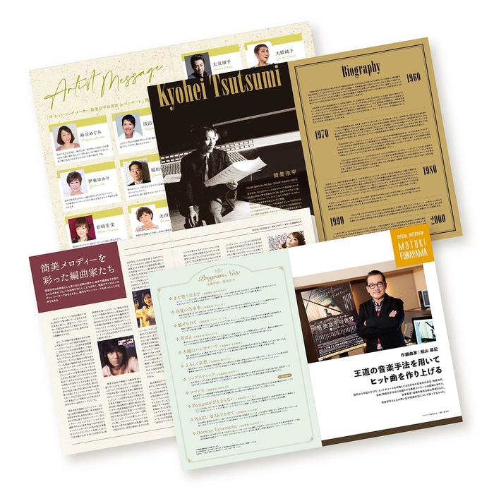 パンフレットは音楽評論家・馬飼野元宏監修のもと、船山基紀のインタビューや筒美京平に関するコラムが満載の読み応えのある内容です。Tシャツは、裏面に本コンサートのキービジュアルを大きくデザインいたしました。会場でのみの販売となりますので、ぜひご覧ください。