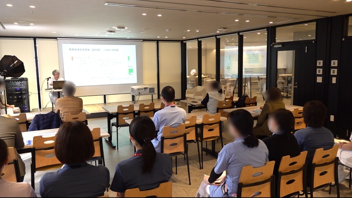 本講座の講師は、The Best Doctors in Japan™ 2024-2025”に選出されている、医誠会国際総合病院 診療副院長 皮膚科 爲政医師が担当し、がん患者さんやご家族、地域のみなさまへのサポートを目的に発足した、医誠会国際総合病院のがん患者会「さくらサロン」内で開催いたしました。