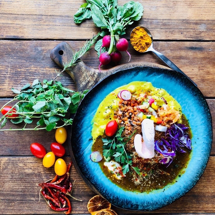 軟骨入り鶏キーマ×明太鶏キーマのあいがけカレー
