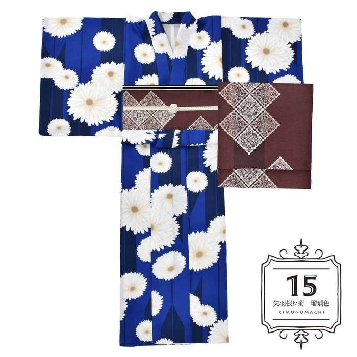 矢羽根に菊 瑠璃色