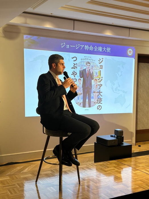 まずは大使から、ジョージアの歴史や風土、文化についてのお話をしていただきました。ユーモアと学びがぎっしりと詰まった大使のお話で、開始早々から皆様のジョージアについての関心が高まり、質問タイムでは、ジョージア観光についての質問などもあがり、実際に現地を訪れてみたいというお客様も多くいらっしゃいました。