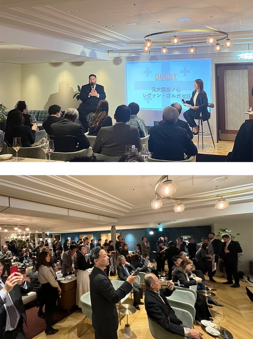 特別ゲストとして、バズる大使として有名なティムラズ・レジャバ駐日ジョージア大使と、日本ソムリエ協会の名誉ソムリエでもあるジョージア出身の元大関栃ノ心(レヴァン・ゴルガゼ氏)をお招きし、参加者の皆様には、ワインとディナーを楽しみながら、ジョージアワインと食文化、ジョージアという国の魅力について学んでいただきました。