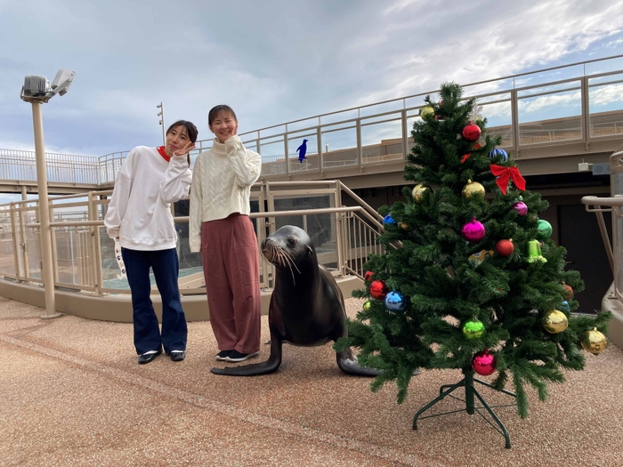 クリスマスの装飾とともに、オーシャンライブで大活躍のバンドウイルカやカリフォルニアアシカと一緒に記念撮影ができる限定プログラムを開催します。思い出の1枚をぜひ動物たちと撮影してみてください。