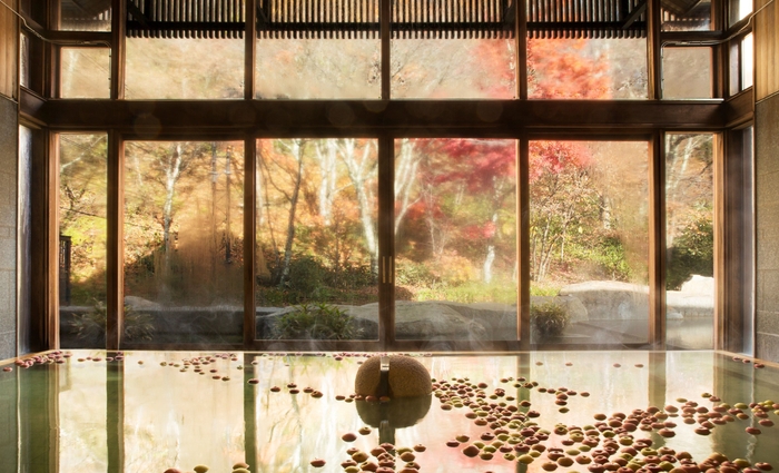 大正四年に開湯し、与謝野晶子や北原白秋など文人墨客から愛された源泉かけ流しの日帰り湯。とろみのある泉質は、美肌の湯と呼ばれています。