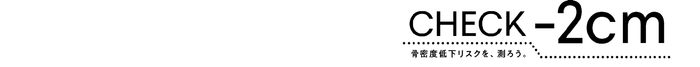 「CHECK-2cm」は、旭化成ファーマ株式会社が「骨検Ⓡ」を通じて発信している骨の健康啓発メッセージです。このメッセージは、骨粗しょう症のサインとしての身長低下に着目し、骨のリスクに気づき、行動してもらうことを目的としています。当社はこの取組みに賛同し、『骨太な未来プロジェクト』を通じて、「CHECK-2cm」のメッセージを広く普及させ、多くの方々が自分自身の骨の健康について考えるきっかけを増やしたいと考えています。
