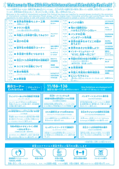 ひたち国際文化まつり実行委員会・ひたちとアジアの文化交流をすすめる会・公益財団法人日立市民科学文化財団は、市民の国際交流・異文化に関する理解を深めるとともに、本市で国際交流に取り組む団体の相互交流を推進することを目的に、令和4年11月13日(日曜日)に「第20回ひたち国際文化まつり」を開催します。