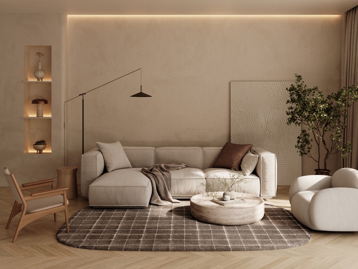 昨年11月に発売して以降、レジデンシャルを中心に多くのご物件に取り入れていただいているレディメイド・ラグに、ツイード調の平織ラグとボリューム感のあるシャギーラグ、やわらかな手触りのファー調ラグを新たに追加。重心の低い家具との相性もよく、空間全体を包み込むような一体感をもたらします。