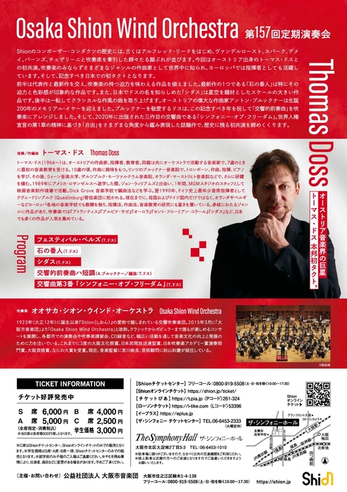 オーストリア音楽界の巨星トーマス・ドス、本邦初タクト❗️「Osaka Shion Wind Orchestra 第157回定期演奏会」プログラム全曲発表❗️