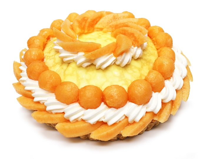 すっきりとした甘みと濃いオレンジ色が特徴の「レノンメロン」をふんだんに使用し、飾り付けました。ココナッツクリームとの相性抜群のミルクレープです。