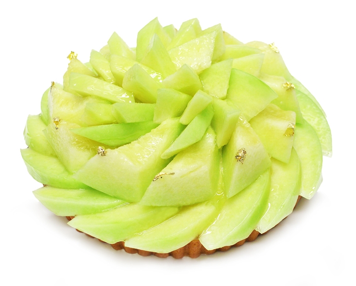 メロンの最高峰ともいわれる静岡県産の「マスクメロン」を使用し、コクのあるカスタードクリームをサンドしました。カスタードクリームが、みずみずしいメロンを引き立てたショートケーキです。