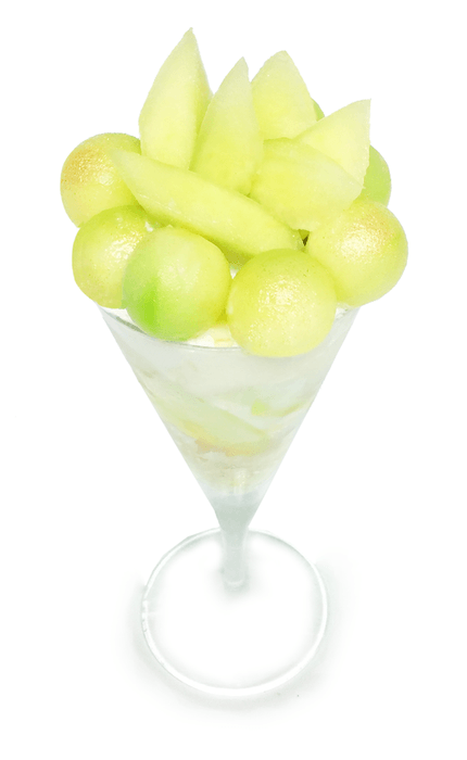 メロンの最高峰ともいわれる静岡県産の「マスクメロン」を、コクのあるカスタードアイスと合わせました。みずみずしいメロンとカスタードアイスが相性抜群のショートケーキパフェです。