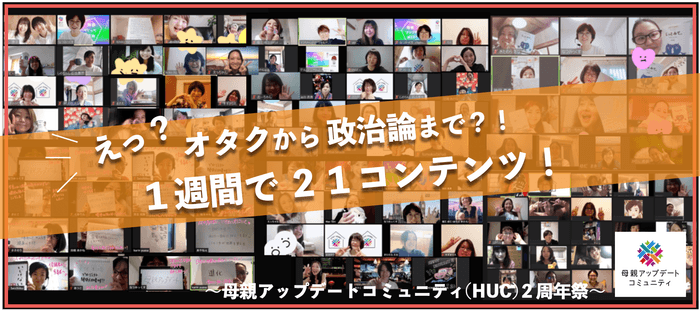 一般社団法人母親アップデートは、自身が運営する母親アップデートコミュニティ(HUC)で、共働き世帯の増加、少子高齢化、人口減少、さらにコロナ禍での社会的混乱による生じる「孤立の子育て」を解決する一歩を目指し、人と人や、違いを「つなぐ」HUC設立2周年オンラインイベント(2020年1月17日より1週間開催)の受付を開始しました。