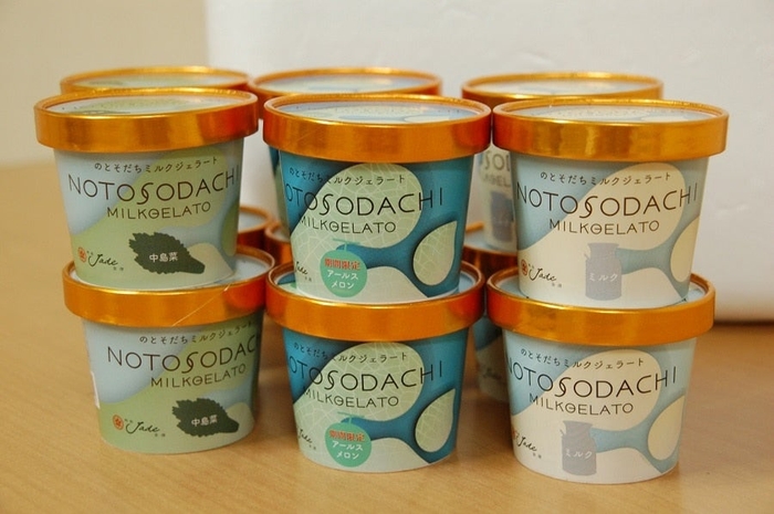 「のとそだちミルクジェラート」は石川県の奥能登で生産された「のとそだち牛乳」を使って作られたジェラートで、まろやかなコクがある「ミルク」をはじめ、能登伝統野菜の一つでありほろ苦い「中島菜」、あふれる果汁と上質な香りの「アールスメロン」の3種類のセットです。