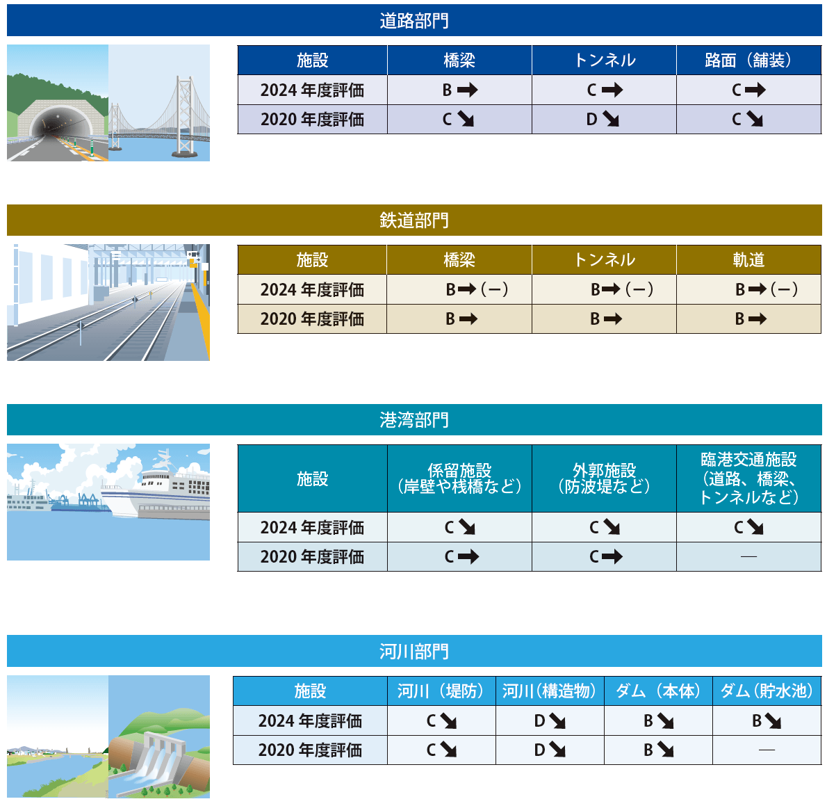 公益社団法人土木学会(会長 田中茂義)は、人々の暮らしや経済活動を支える社会基盤(インフラ)について、施設の健康度と維持管理体制の2点から評価した「インフラ健康診断書2024」を2024年6月14日に公表いたしました。