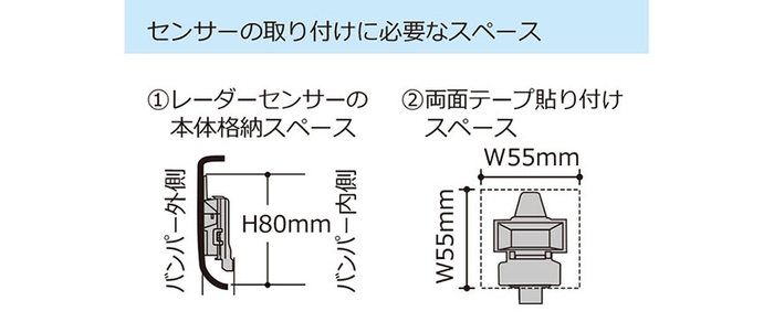 自動運転技術にも応用されている79GHzミリ波レーダーを利用、バンパーへの穴あけ不要の簡単装着で精度抜群の障害物感知する次世代後方障害物確認装置を新発売!