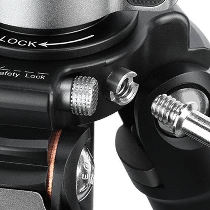 ボディにはアクセサリーの取付が出来るネジ穴を装備、1/4インチネジと3/8インチネジ両方の取付口を各1つずつ備えており色々なアクセサリーを撮影時に使用する事が可能。