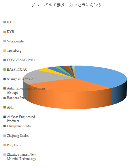 同レポートによれば、世界の主要製造業者にはBASF、KYB、Vibracoustic、Trelleborg、DONGYANG P&C、BASF INOAC、Shanghai Carthane、Anhui Zhongding Holdings (Group)、Bonpora Parts、AMPなどが含まれており、2024年時点で上位5社が売上ベースで約76.0%の市場シェアを占めている。BASFは素材技術とグローバル供給網を武器に多様な自動車メーカーへ製品を提供しており、Vibracousticは防振技術を核に欧州高級車ブランドとの強固な関係を構築している。また、アジア勢のDONGYANG P&CやAnhui Zhongding Holdingsはコスト競争力と地域供給網の強みを活かし、グローバルOEM向け供給を拡大している。今後はEVサスペンション特性への最適化や新素材の採用により、製品の高機能化競争が一層激化することが見込まれる。