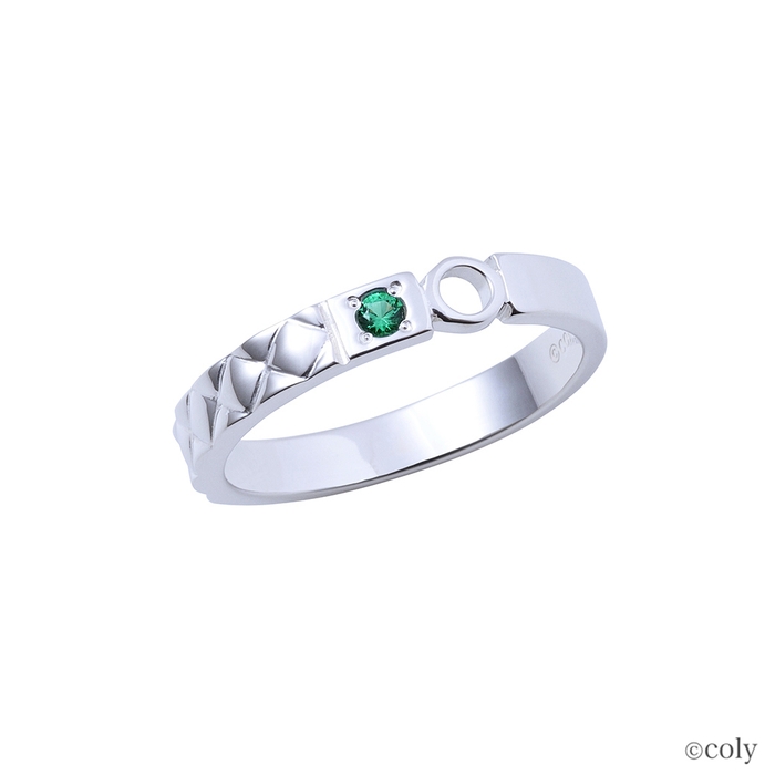 「魔法使いの約束」に登場する北の国の魔法使い、ブラッドリーをイメージしたシルバーリングです。衣装の模様とチョーカーのトップをモチーフとしてリングに取り込んだストレートタイプのデザインに、イメージカラーストーンをセット。内側には魔道具のアイコンを刻印しました。散りばめられたモチーフが魅力的なデザインです。
