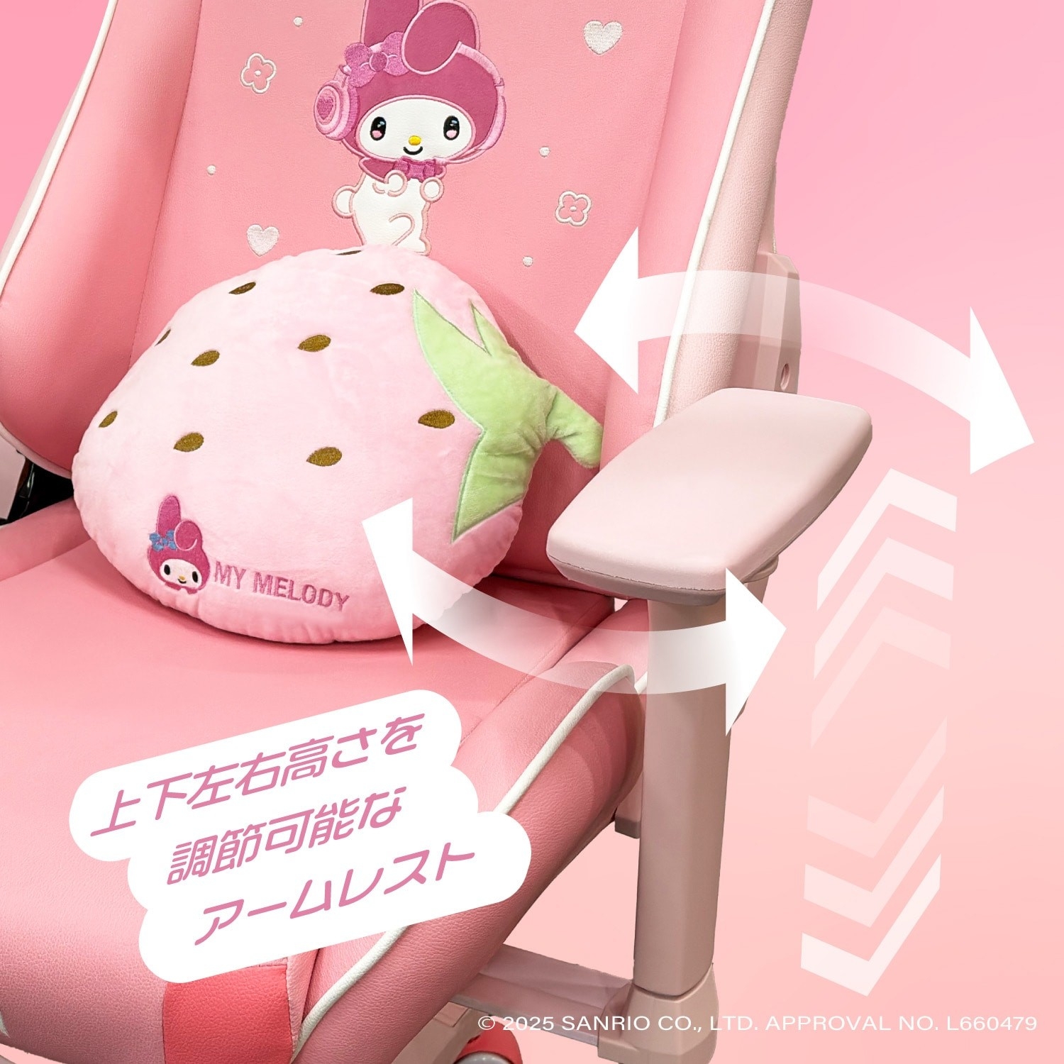 サンリオキャラクターズ「マイメロディ」をイメージしたゲーミングチェアです。カラーリングから刺繍まで、すべてマイメロディ仕様となっております。