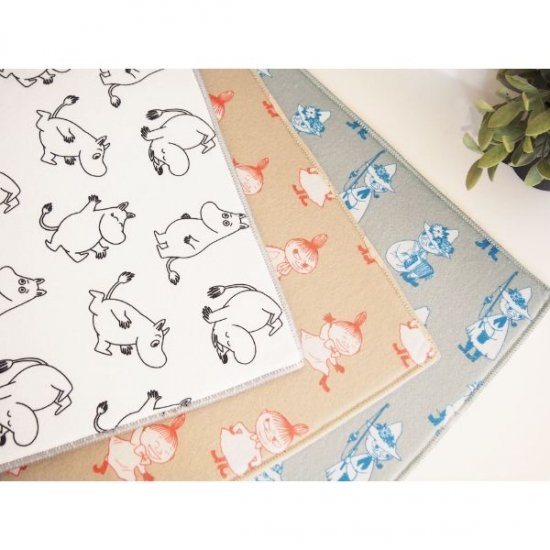 お馴染みムーミンのキャラクターといろんなデザインがミックスされた、それぞれにシンプルながらに個性が光るランチョンマットです。