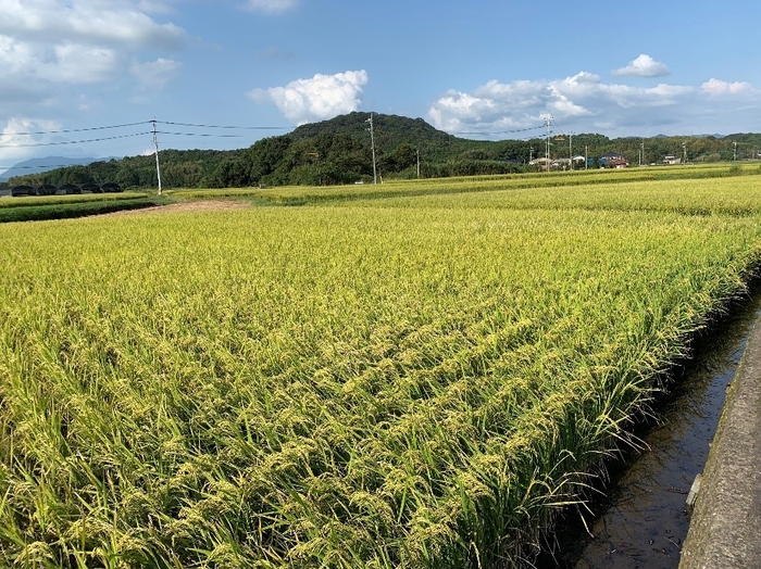 福岡県・佐賀県の南部、有明海の湾奥に面する九州最大の平野「筑紫平野」の北部で作られています。「筑紫平野」は九州地区の中で最もフラットな地形が広大に続く地形で、日の出から日没までとても日照時間の長く、お米の収穫時期には南部よりも昼と夜の寒暖の差が大きくなり、作物の充実を大きく手助けしてくれます。