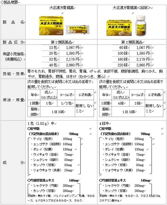 大正製薬株式会社[本社:東京都豊島区 社長:上原 茂]は、大正漢方胃腸薬の微粒1包あたりの容量を少量化し、錠剤の大きさも小型化するとともに、あわせてパッケージデザインもリニューアルし、6月1日より発売いたします。