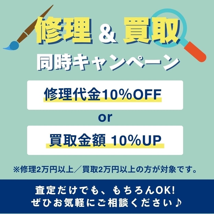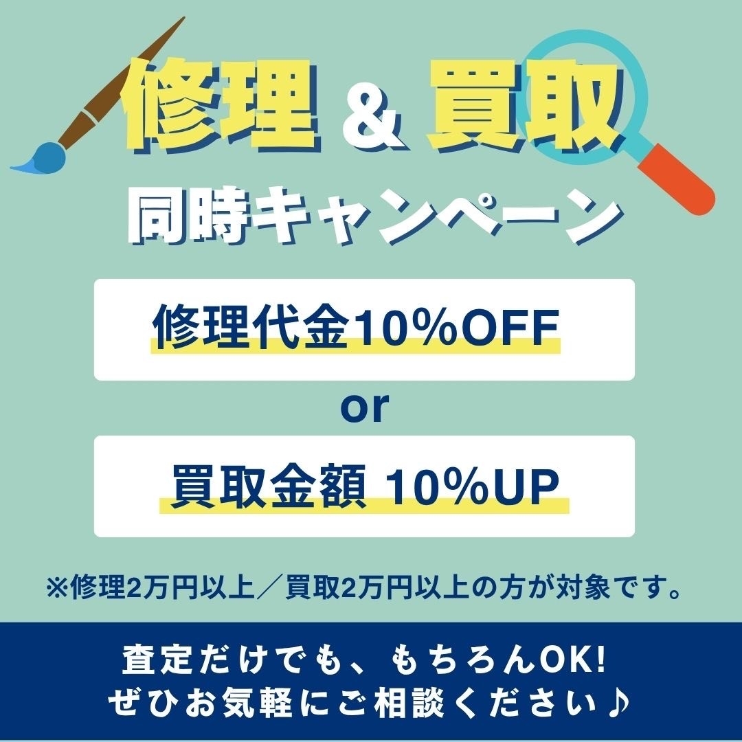 対象:期間中に 修理2万円以上+買取2万円以上を同時にご成約いただいたお客様