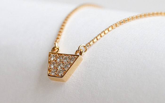 定番の一粒ダイヤネックレスは70種以上のデザインを取り揃えており、顕微鏡を使い小さなダイヤモンドを爪で留める技術「マイクロ・セッティング」を用いたパヴェの商品も豊富である。