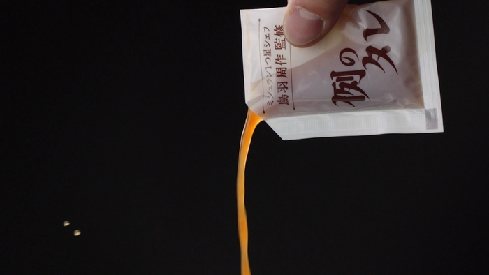そのプロセスで、「調味」の鍵を握るのが「タレ」だと気づきました。今回はりんご/はちみつ/生姜の効いた秘伝の「タレ」、その名も「例のタレ」を鳥羽シェフと共に開発しました。